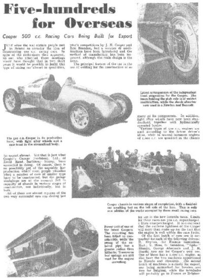 We recently purchased a Cooper 500cc racecar, the car is a mk2, the 10th production Cooper to be made(the mk1 were the 2 prototype cars) powered by a single cylinder 500 J.A.P speedway engine, running on methanol. We hope to get the car finished for the beginning of next year (2006) which is the 60th aniversary of Cooper Cars ltd. the cars is now having new bodywork made.
