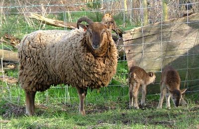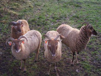 During the early years of the twentieth century the late Sir Jock Buchanan-Jardine began a breeding programme on his Castlemilk Estate in Dumfriesshire. Using Manx Loghtan, moorit Shetland and wild Mouflon, he developed a breed to beautify his parkland and provide fine, kemp free moorit coloured wool, hence the name Castlemilk Moorit. The Castlemilk Moorit is one of the larger primitive type of breed. The head is clean and level between the ears. The ewes exhibit two uniform and wide spreading horns which are much heavier and evenly spiralled in the rams, avoiding the cheeks.The neck should be well set on the shoulders following on to a straight back and well sprung ribs; the tail is naturally short and narrow. Both sexes should be upstanding on clean fine-boned legs, with naturally small feet. It’s whole appearance is graceful and well balanced; they are extremely agile and fleet footed. The Castlemilk Moorit sheep society can be found at www.castlemilkmoorit.co.uk .The Rare Breed Suvival Trust (RBST) was set up to try and prevent the extinction of traditional farm breeds, the trust can be found at www.rare-breeds.com and in europe the SAVE foundation is working to similar ends www.save-foundation.net
